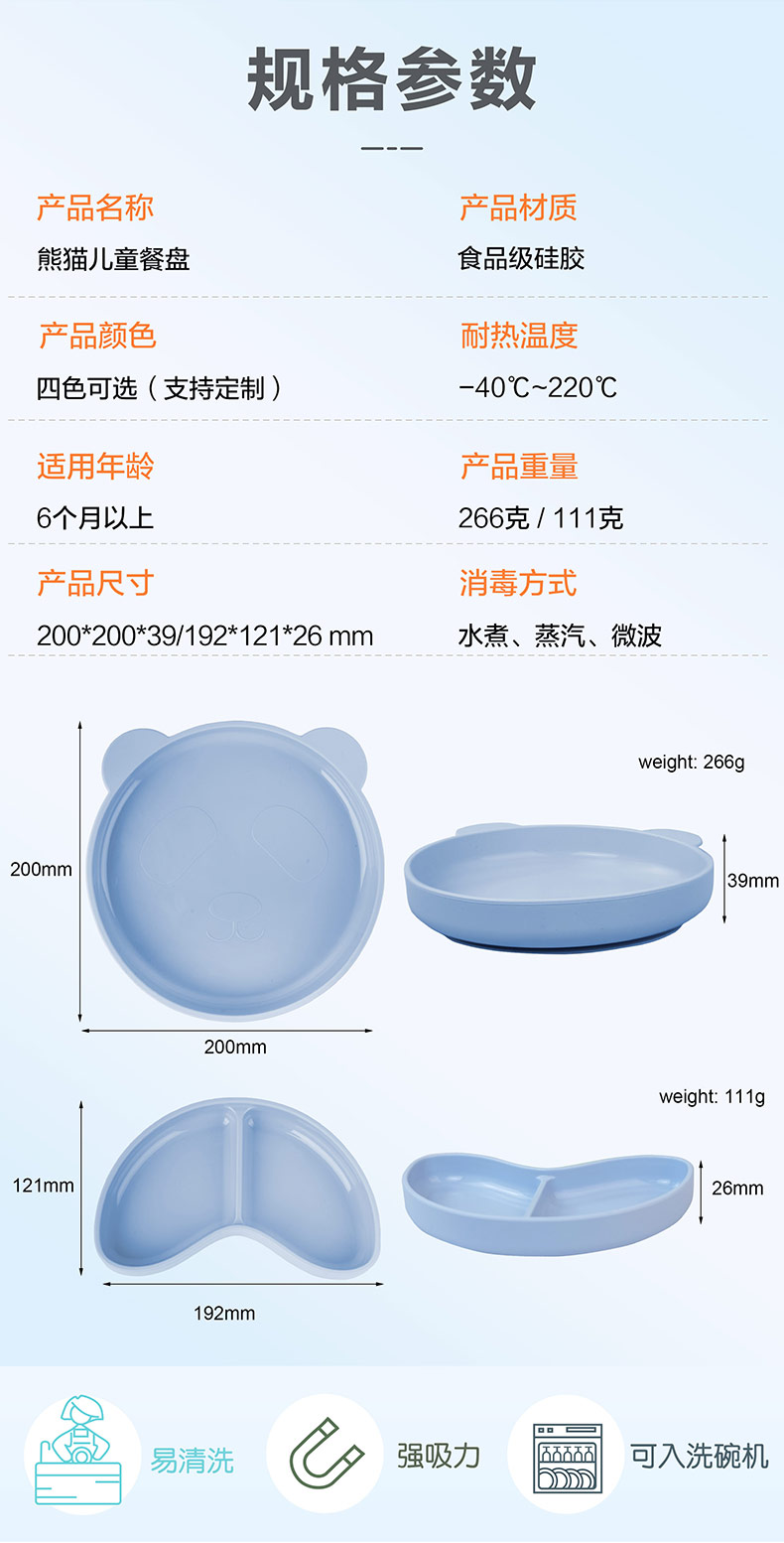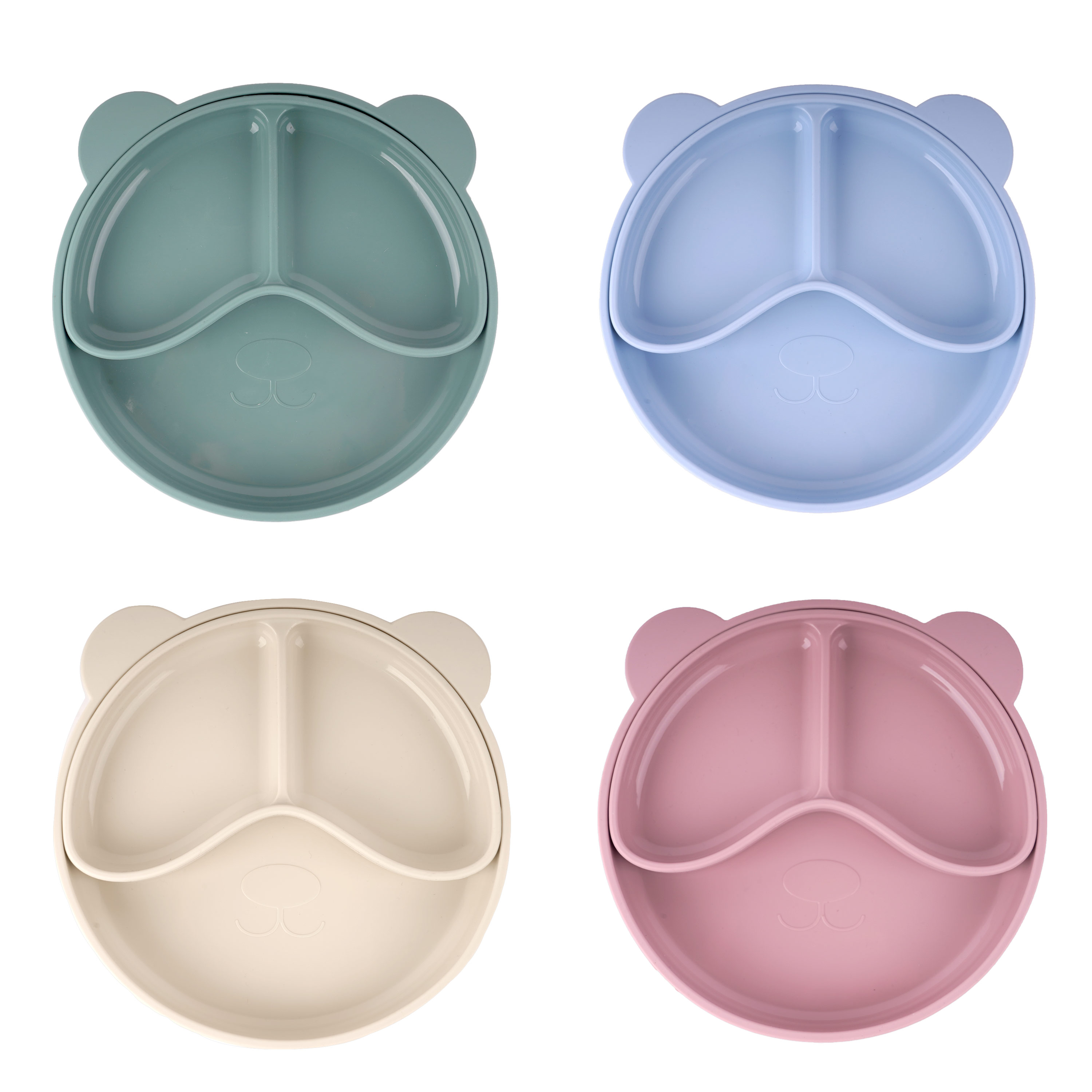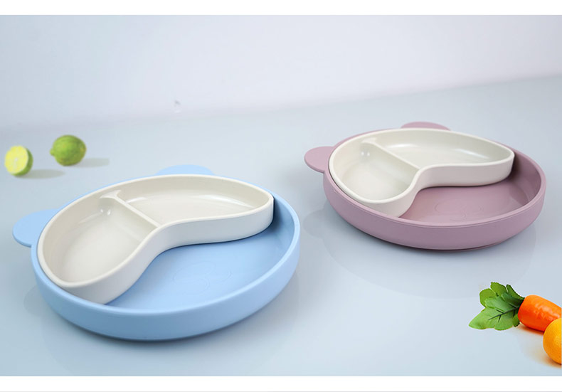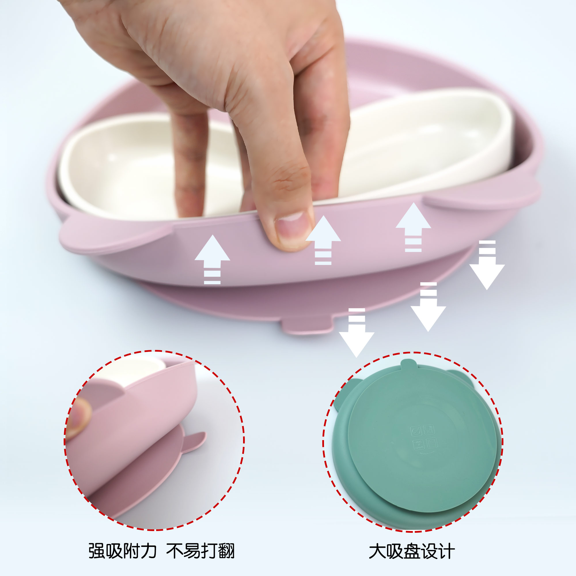 寶寶熱銷(xiāo)餐盤(pán)可拆分食品級(jí)硅膠分隔盤(pán)輔食吸盤(pán)三格兒童硅膠餐盤(pán)
