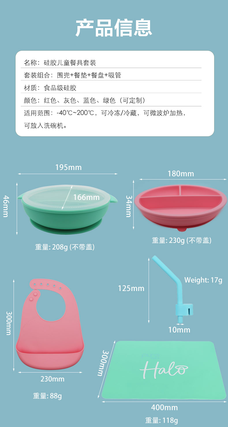 套裝組合:圍兜+餐墊+餐盤+吸管