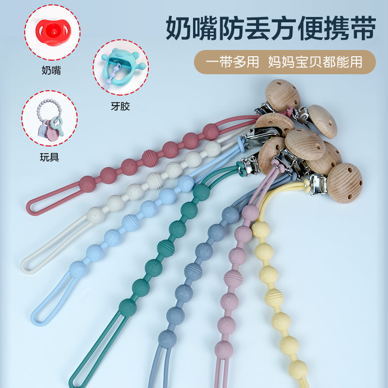 材質(zhì):硅膠奶嘴鏈+櫸木夾子