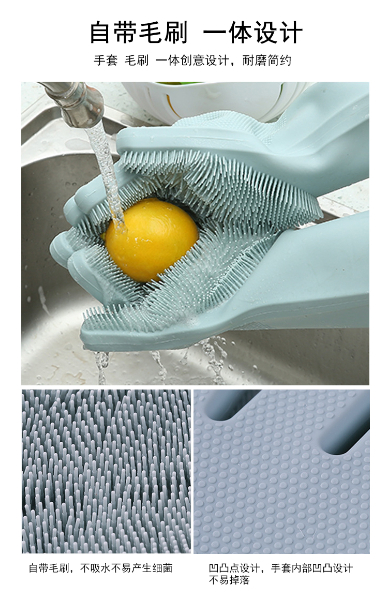 硅膠清潔手套是近年來(lái)比較火熱的廚房清潔用品。采用柔軟硅膠健康材質(zhì),手套正面有多重清潔刷頭,耐磨耐熱,強(qiáng)力去除污漬。