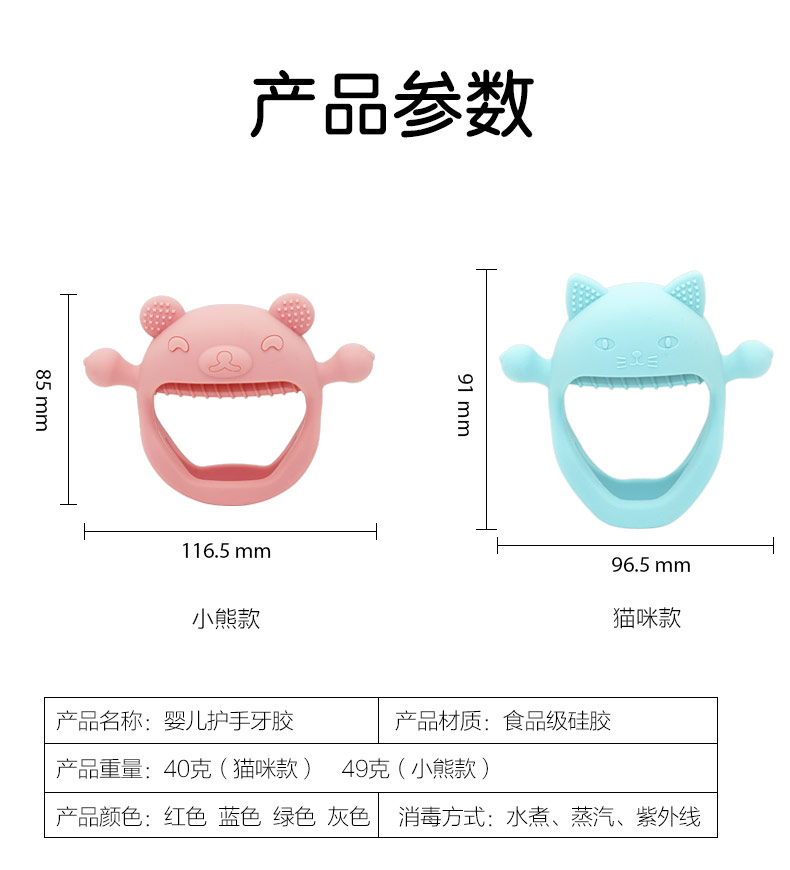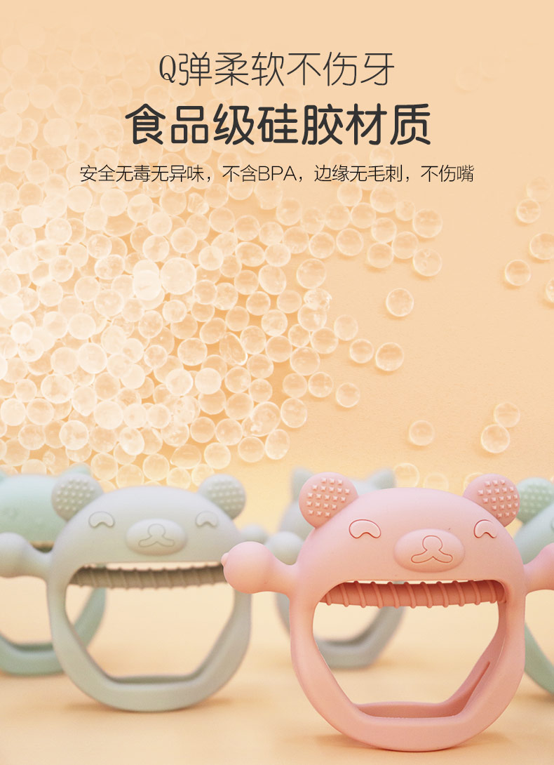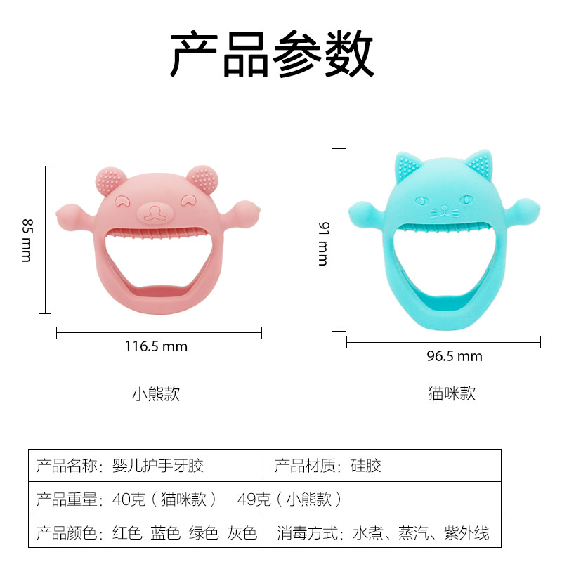 寶寶磨牙棒 嬰兒手套硅膠牙膠 護手嬰幼兒小熊嬰兒牙膠