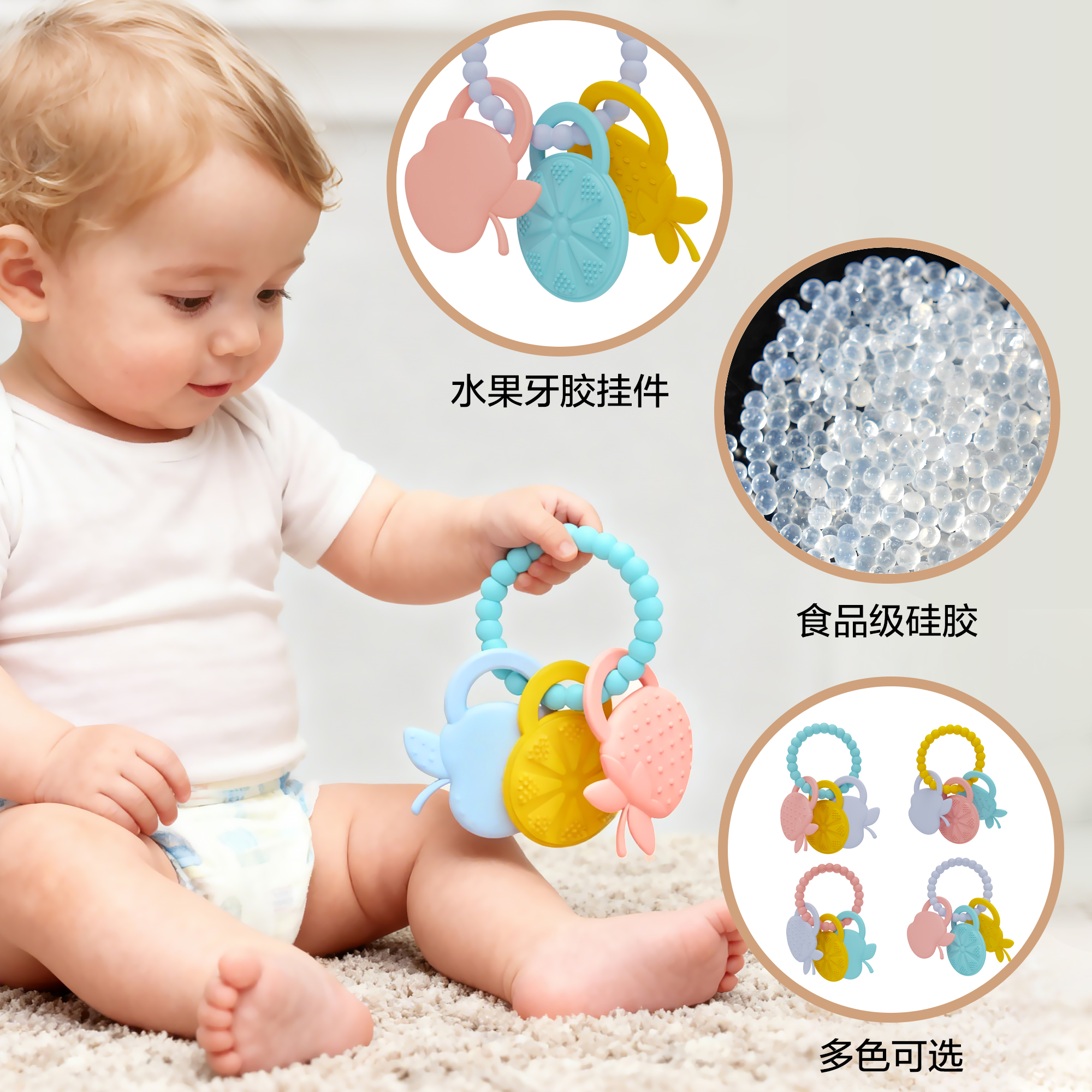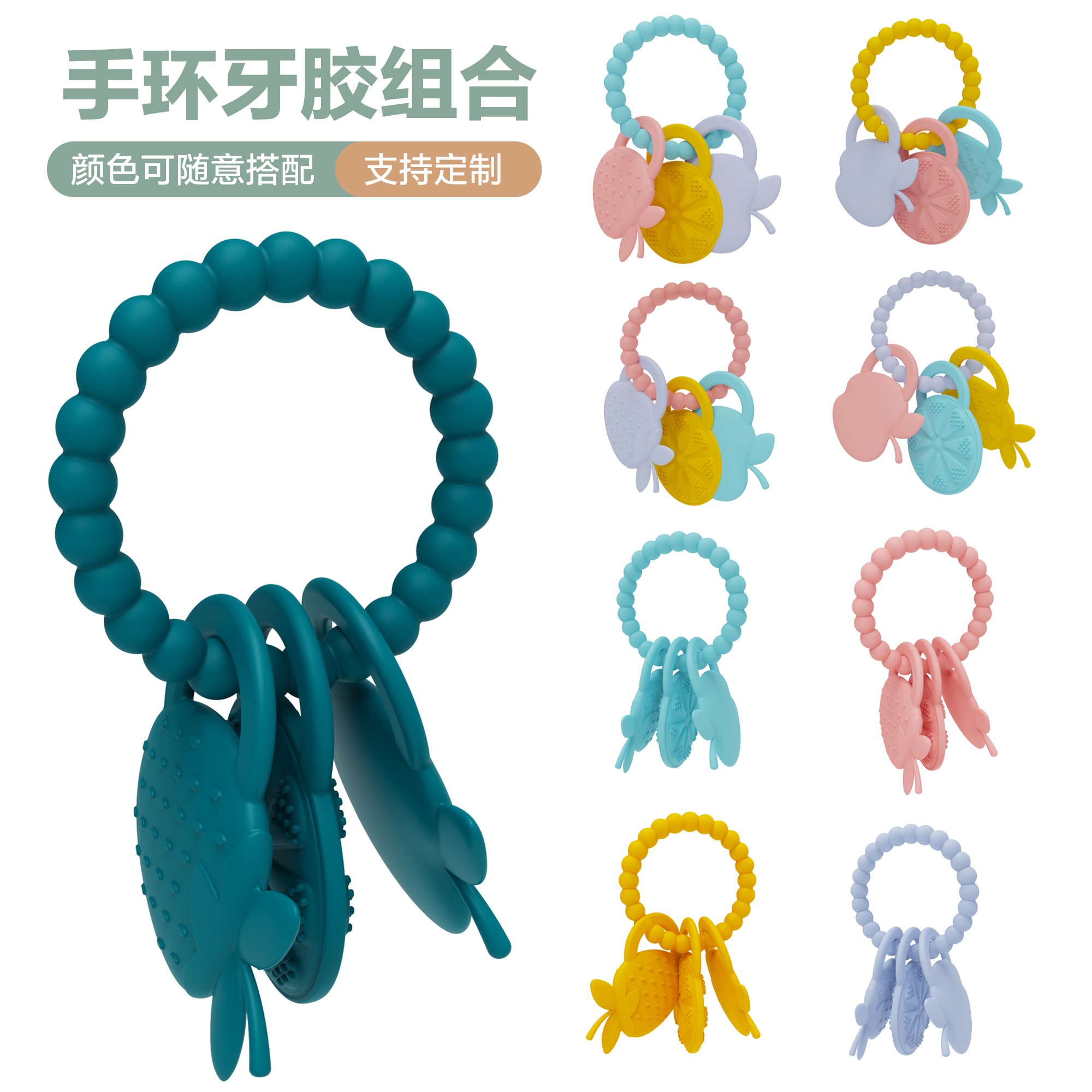 亞馬遜新生嬰兒硅膠牙膠防吃手圓環(huán)食品級可握咬玩具手環(huán)母嬰牙膠